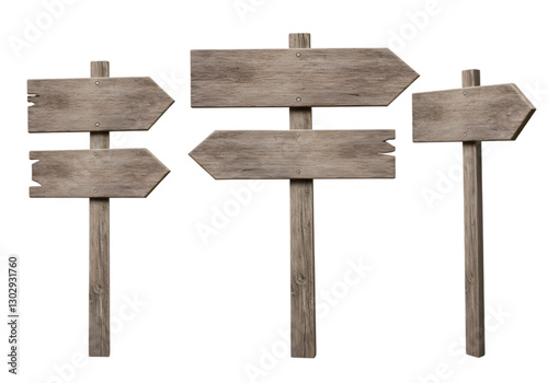 Wooden Directional Signboards Isolated on White Background for Use in Travel and Adventure Concepts