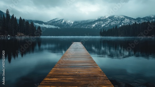 Wooden Dock Leading to Mountain Lake