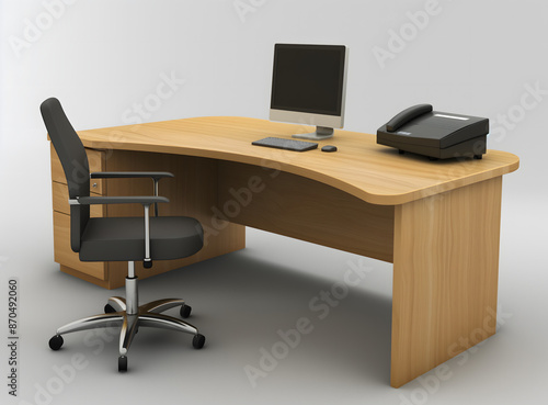 Wooden executive desk chair elegant curved shape black isolated white background PNG Luxury office Concept