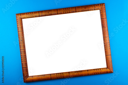 Wooden frame blue background