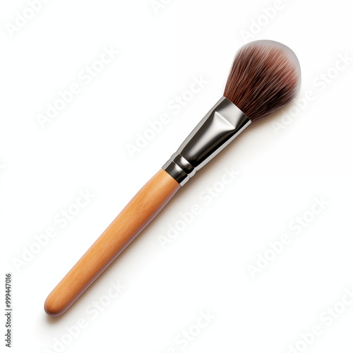 Wooden Handle Makeup Brush Isolated on White Background