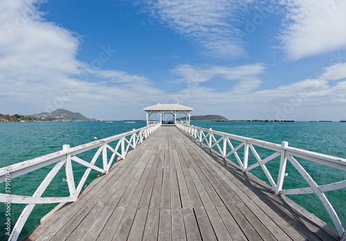 wooden long bridge reach out the sea