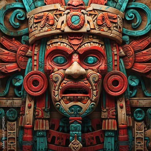 Wooden mask in the style of the Aztec, 3D illustration, Ai Generated
