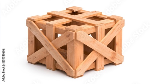 Wooden minimalistic crate structure on isolated white background. Generative AI