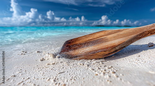 Wooden Paddle Stuck in Light Sand on a Tropical Beach
