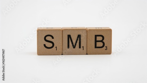 Wooden pieces stacked to display the letters SMB, symbolizing Server Message Block.