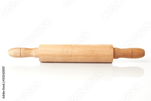 Wooden Rolling Pin Isolated on a White Background for Baking and Cooking Activities