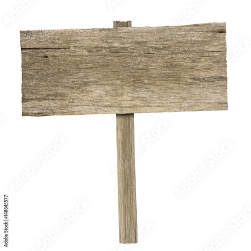 Wooden sign isolated on white background with clipping path
