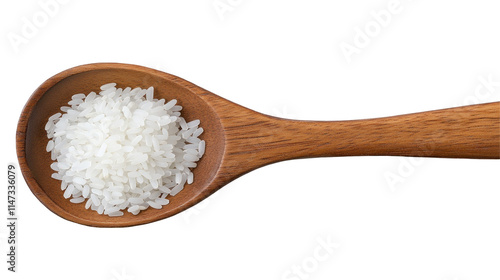 Wooden Spoon with White Rice Isolated on a White Background for Culinary and Food Presentation
