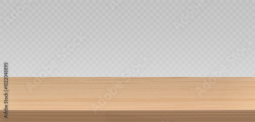 Wooden table top vector illustration. Dining table made of wood, realistic plank texture. Empty desk top