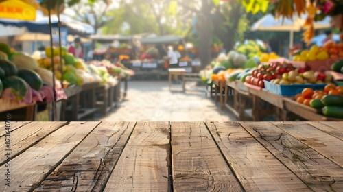 Wooden Tabletop with Blurred Market Background.
