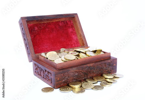 Wooden Treasure Chest Filled with Gold Coin