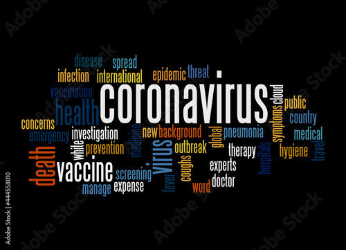 Word Cloud with CORONAVIRUS concept, isolated on a black background