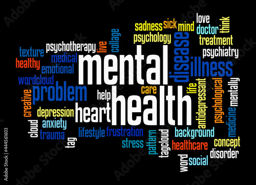 Word Cloud with MENTAL HEALTH concept, isolated on a black background