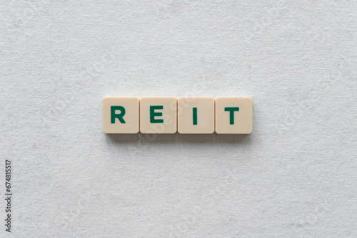 word "REIT" with red letters. Concept of real estate investment trust.