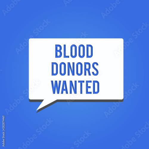Word writing text Blood Donors Wanted. Business concept for Looking for someone willing to donate their blood.