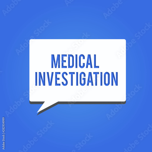 Word writing text Medical Investigation. Business concept for Doing analysis to collect data for new drugs or device.
