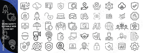 Work Safety editable stroke outline web icons set. Safety first, hazard, protection, health, insurance, regulations, helmet and work. Vector illustration design . big icon set