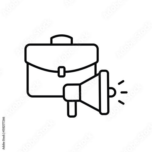Workforce Hiring Icon. Outline Style. Vector. Job Announcement with Briefcase and Megaphone. Labor Shortage Problem. Recruitment Message Symbol. Staff Search and Employment Alert