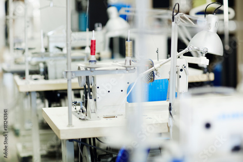 Workplace of tailor or dressmaker with sewing-machine and lamp
