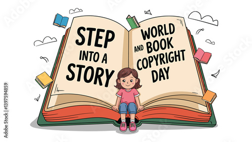 World Book and Copyright Day Concept Featuring Open Books, Light Bulb, Quill Pen, Copyright Symbol, and Reading Elements in Flat Vector Style – Celebrating Literature, Creativity, and Intellectual Pro