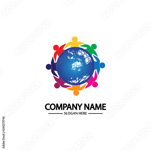 world comunity logo with people and globe illustration design vector.