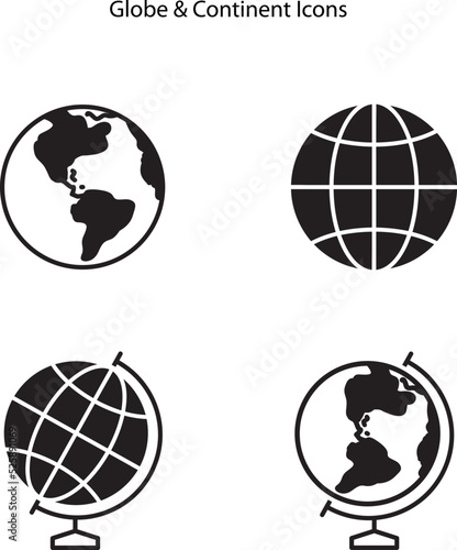 World globe continent glyph icon set. Vector Earth global country map planet line icon.