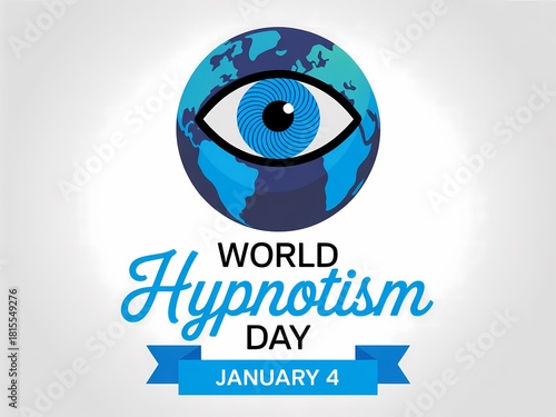 World hypnotism day celebration featuring an eye on a globe with text and ribbon