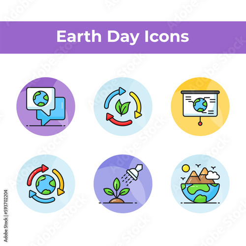 World mother earth day related icons set such as, conversation, recycling, presentation, watering plant, mountains