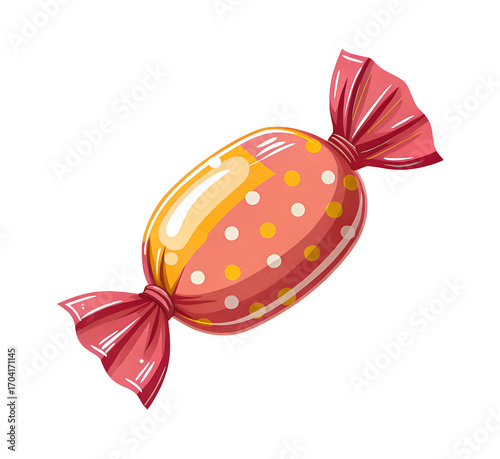 Wrapped Candy with Polka Dots Illustration on transparent background