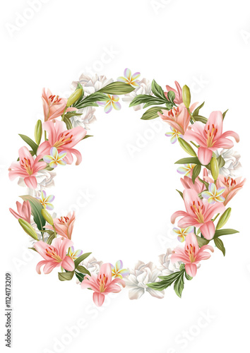 wreath of pink flowers illustration