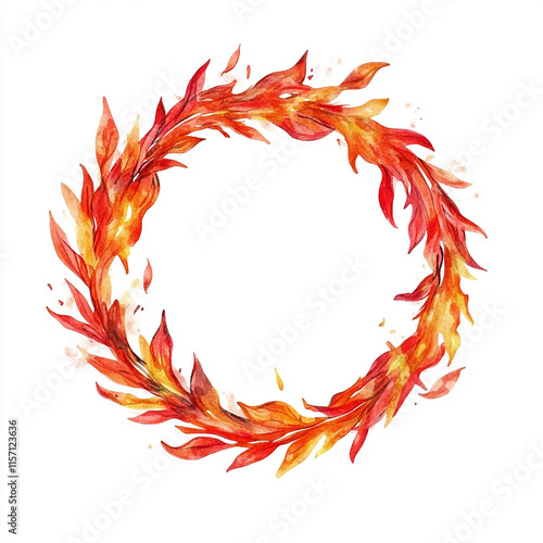 Wreath watercolour fire flame in shape of white background, frame with circular for design background