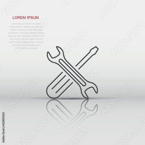 Wrench and screwdriver icon in flat style. Spanner key vector illustration on white isolated background. Repair equipment business concept.