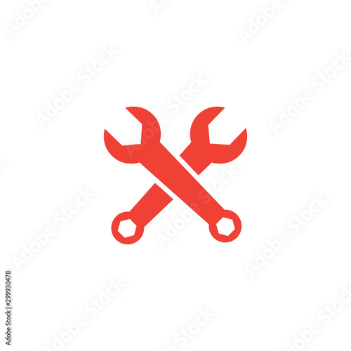Wrench Crossed Red Icon On White Background. Red Flat Style Vector Illustration