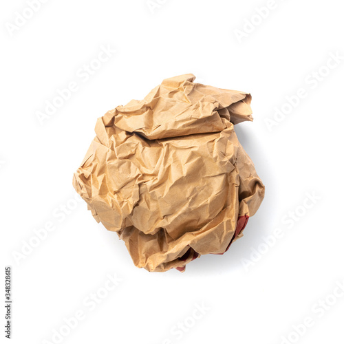 Wrinkled Kraft Paper Textured Ball Isolated on White background