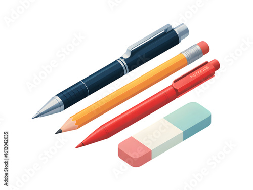 Writing instruments and eraser isolated on a transparent background pencil stationery
