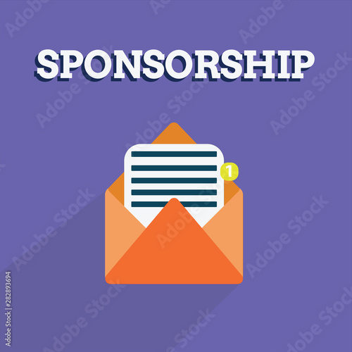 Writing note showing Sponsorship. Business photo showcasing Position of being a sponsor Give financial support for activity.
