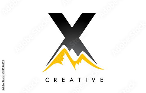X Letter Mountain Logo. Letter X with Mountain Peaks Shape Vector Illustration
