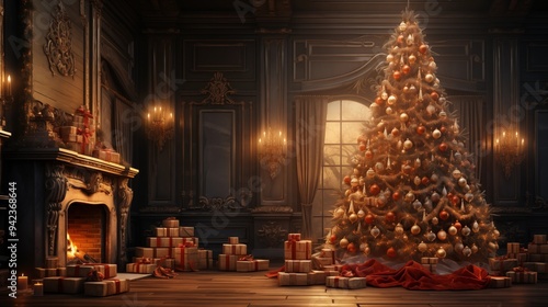 Xmas Christmas New Year holiday celebration traditional family winter time background decoration poster.
