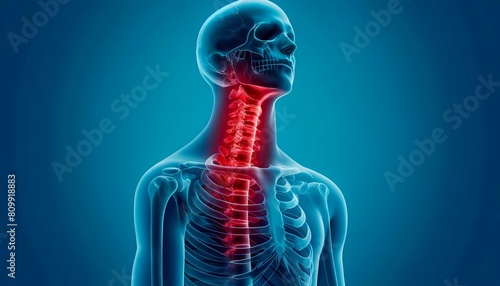 X-ray image of a human head and cervical spine highlighting areas of pain Concept of neurological diagnostics and spinal health