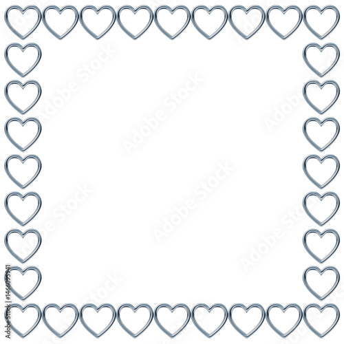 メタリックなハートの正方形フレーム。y2k風の金属のチェーンの3DCGイラストのあしらい
