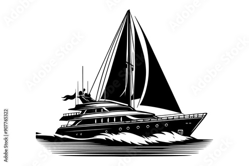 yacht silhouette vector illustration isolated on transparent background - Generative AI