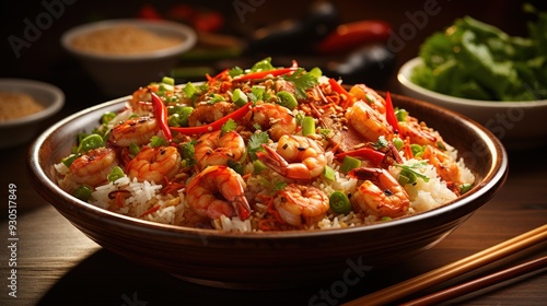 Yangzhou Fried Rice with Shrimp and Vegetables. Best For Banner, Flyer, and Poster