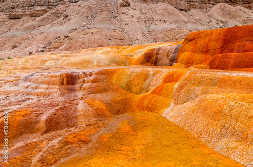 yellow and orange flowstone around Crystal Geyser (Green River, Utah, USA)