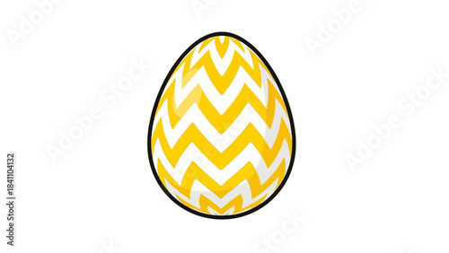Yellow and White Patterned Easter Egg with Black Outline on White Background