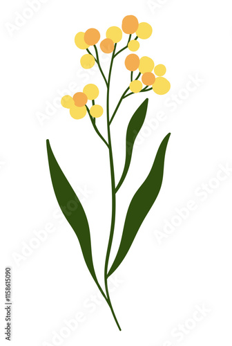 Yellow Flowers, Flat Style Vector Illustration, Spring Flower