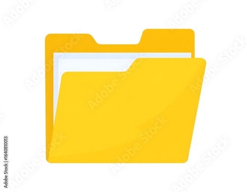 Yellow folder icon with documents for office organization and data storage, a flat vector illustration isolated on a white background.