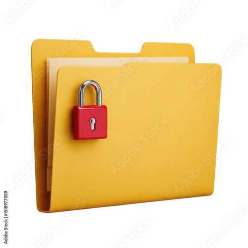 Yellow folder with red padlock icon isolated on white background