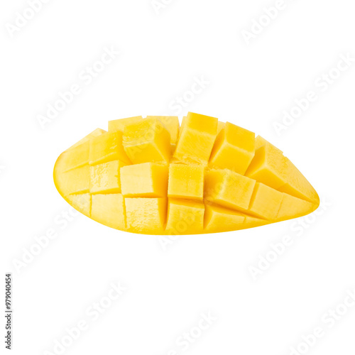 Yellow Mango slices, cutout, full depth of field.