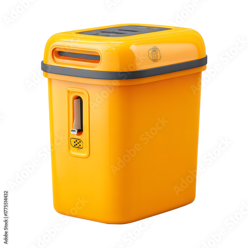 Yellow Plastic Container Waste Disposal Bin Trash Can Garbage Isolated